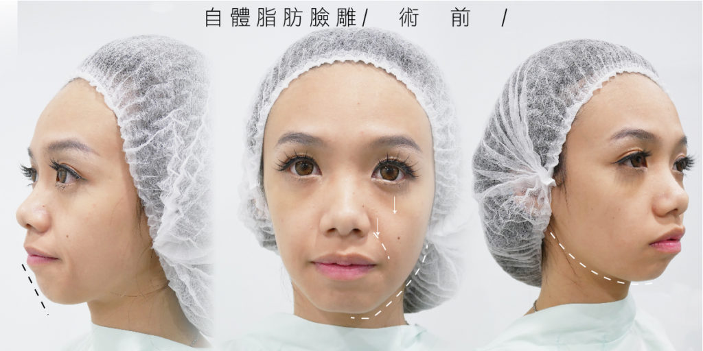 大家可以先參考我這次想要改善自體脂肪的部位,正臉和側臉都是喔!